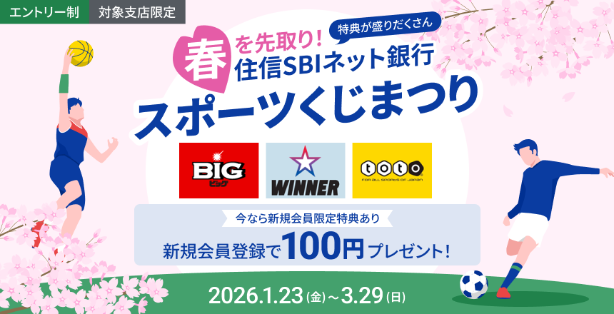 住信SBIネット銀行株式会社(以下「住信SBIネット銀行」)は、2026年1月23日(金)から2026年3月29日(日)まで、スポーツくじを購入したお客さまを対象とするキャンペーンを実施いたします。